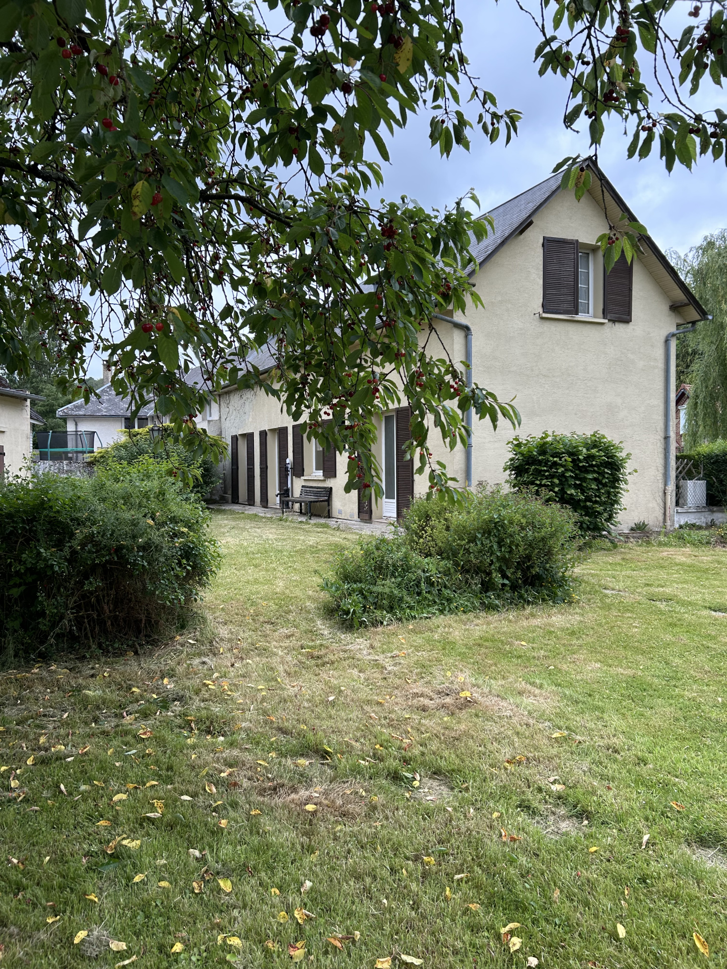 1er maison construite 1977 - superficie de 86.0m² env. : Entrée, cuisine, séjour cheminée ouverte, buanderie, salle de bains, wc, 1 chambre, débarras Etage 2 petites chambres, cabinet de toilettes 2 garages dpe G ges C